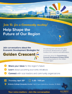Formed in 1998, The Golden Crescent Regional Planning Commission (GCRPC) is a voluntary association of local governments and special districts within the seven-county Golden Crescent region encompassing Calhoun, DeWitt, Goliad, Gonzales, Jackson, Lavaca, and Victoria counties.